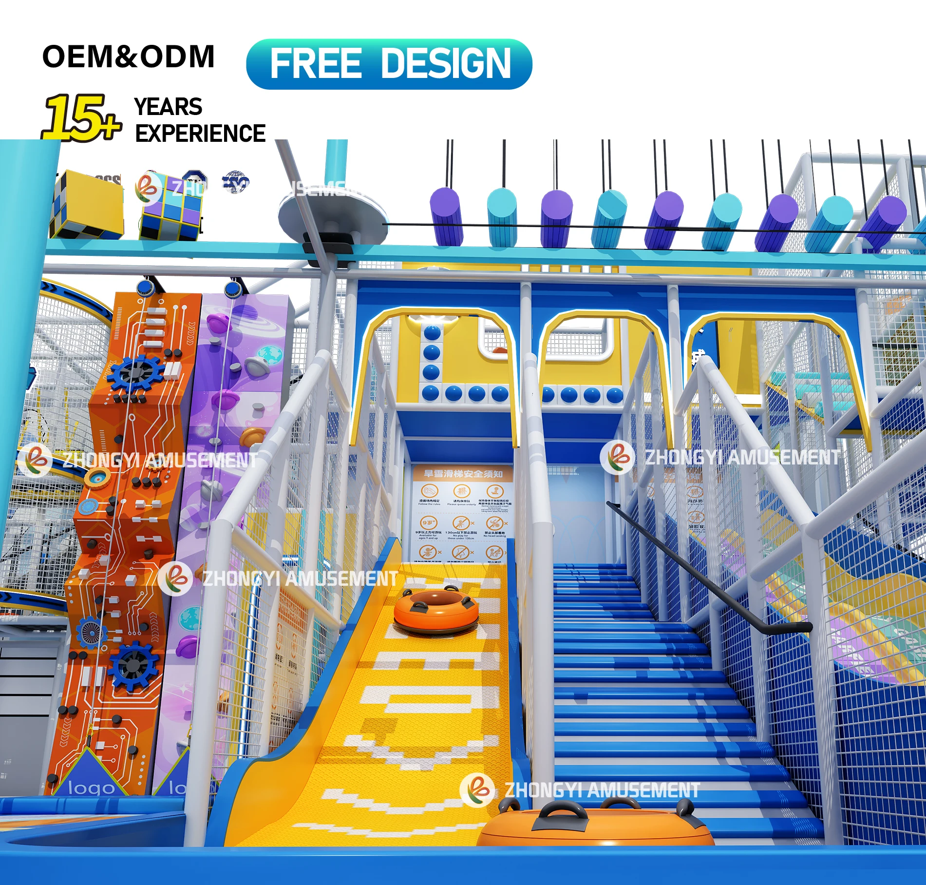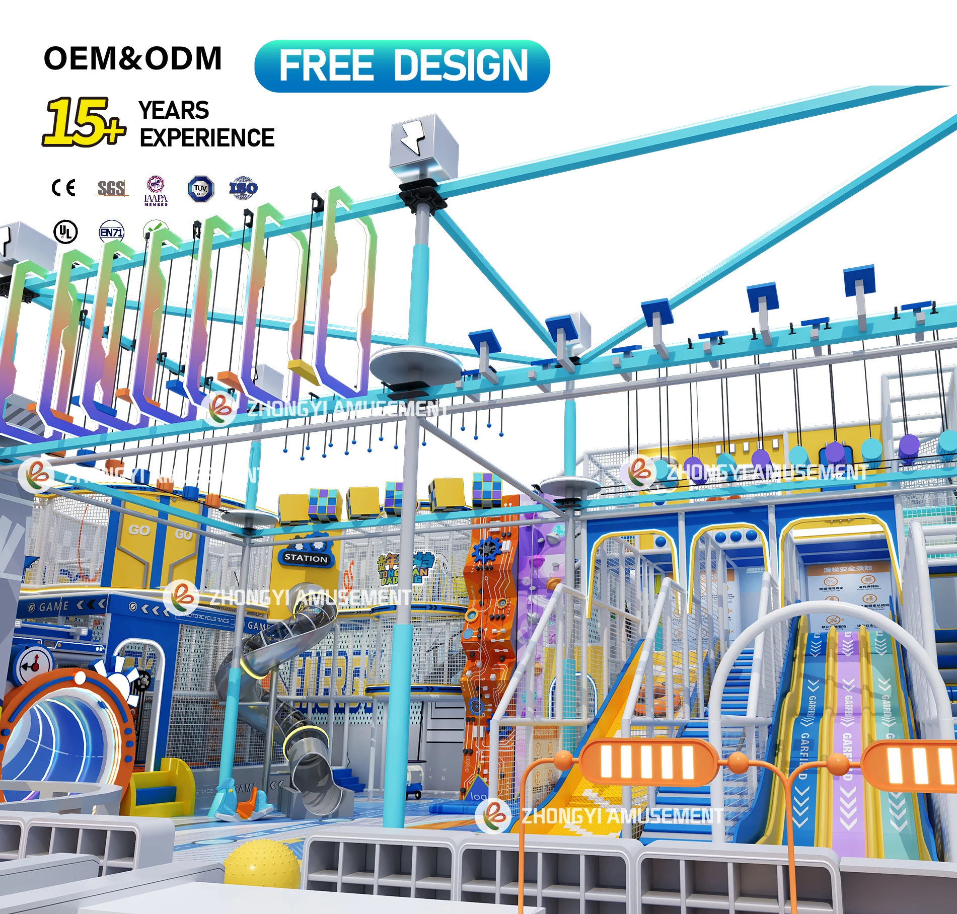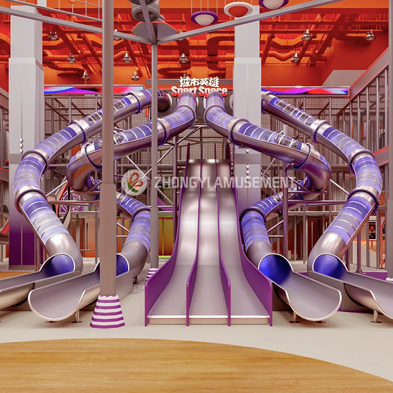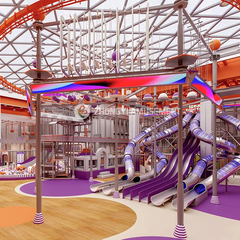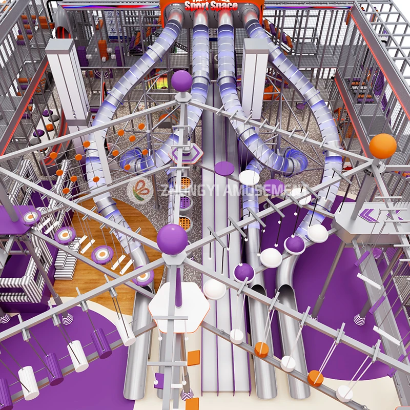 Commercial Indoor Playground Equipment City Slide Games with Trampoline, Climbing Wall, Rope Course ,zip Line